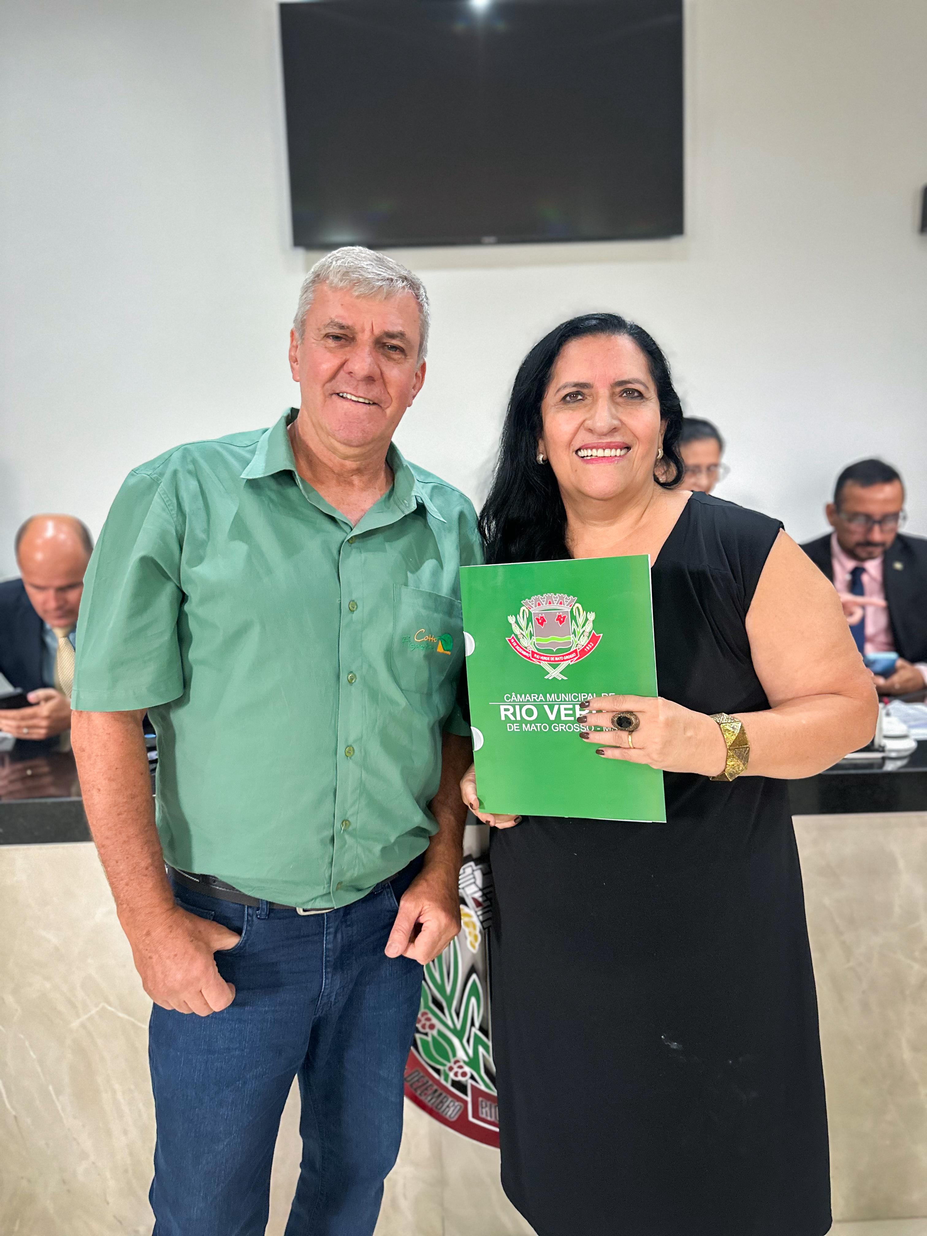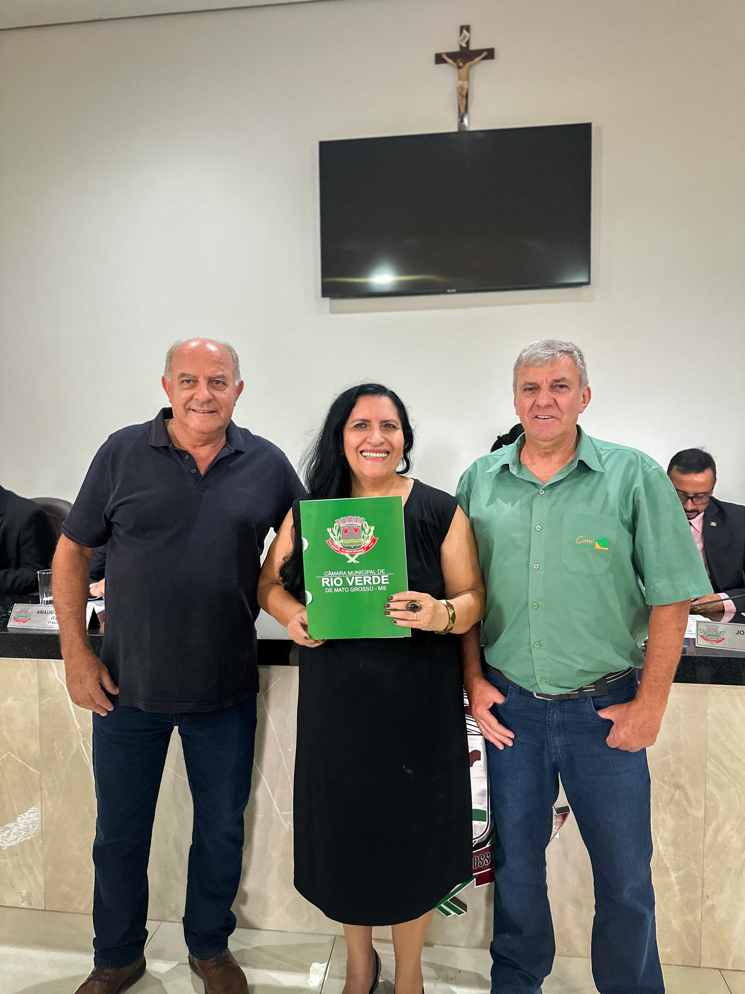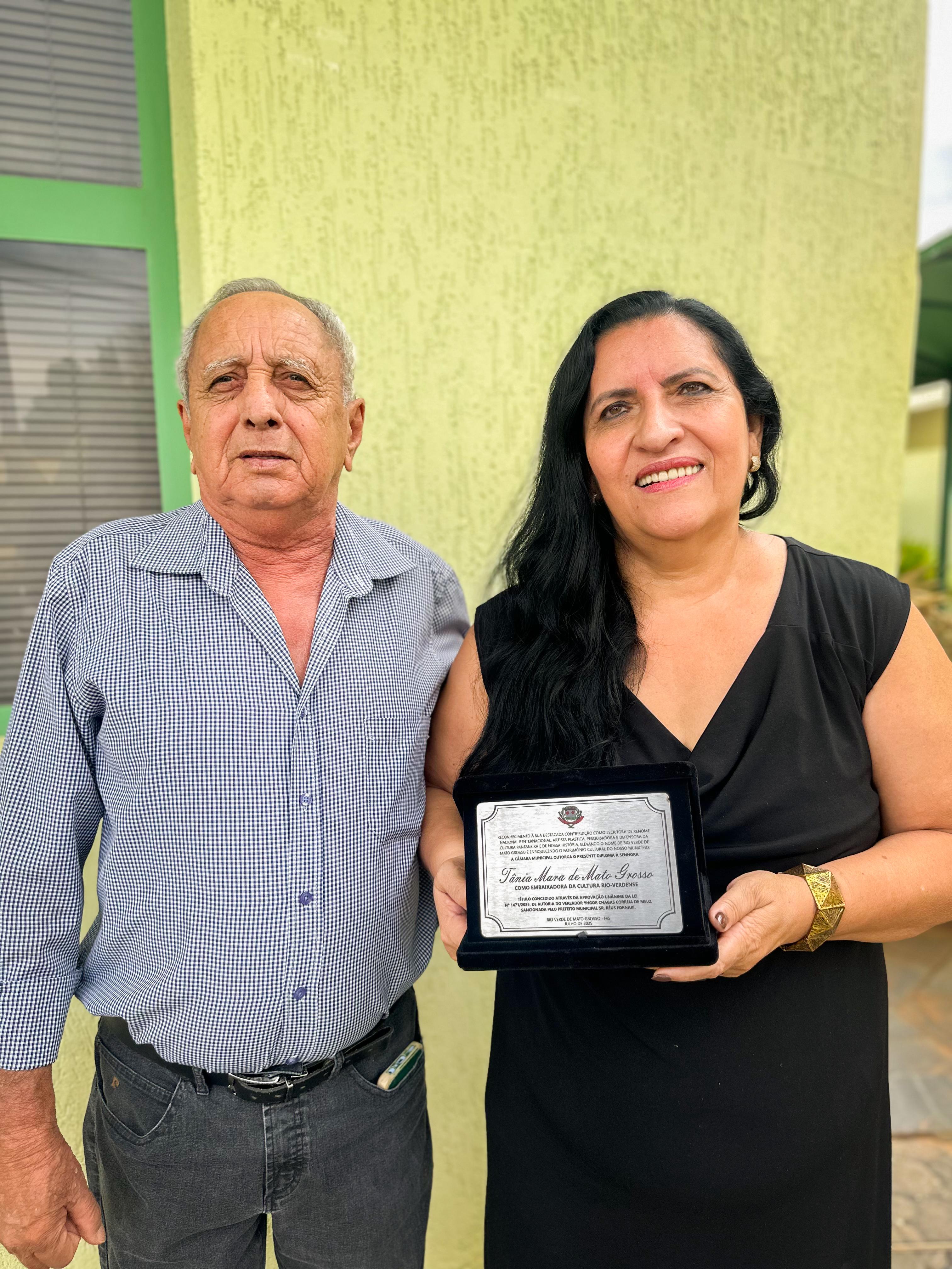 A Câmara Municipal de Rio Verde de Mato Grosso realizou, nesta terça-feira (16), uma solenidade para entregar o título de Embaixadora da Cultura Rio-Verdense à escritora, roteirista, artista plástica e pesquisadora Tânia Mara de Brito Lima. A homenagem, proposta pelo vereador Ihgor Chagas Corrêa de Melo, foi aprovada por unanimidade pelos 11 vereadores e sancionada pelo Executivo municipal.