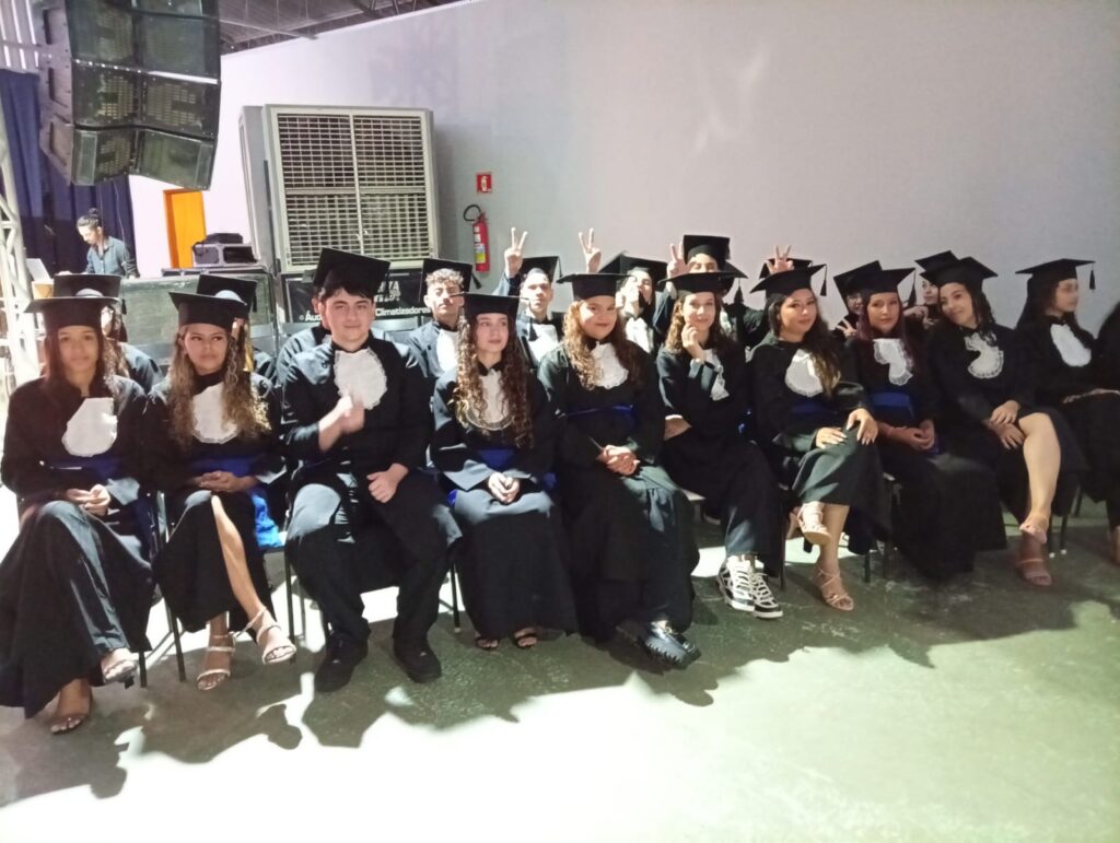 Um destaque especial foi a turma do 3º A, que, além da conclusão do Ensino Médio, finalizou também a Educação Profissional, obtendo certificação nas formações de Assistente Administrativo, Analista de Marketing e Assistente de Projetos e Inovação. As formações cumpriram a carga horária prevista pela Secretaria Estadual de Educação, em parceria com o SENAI, sob coordenação e supervisão do professor Douglas William Ferreira Nogueira.