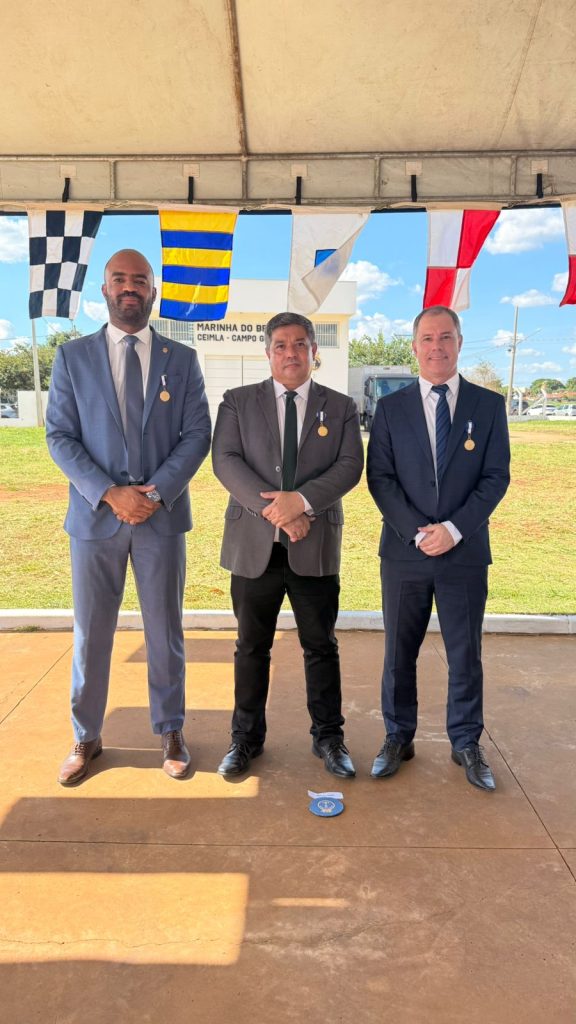 Os delegados da Polícia Civil, Fabiano Nagata (Coordenador de Atendimento Psicossocial e Espiritual), Rafael Carvalho (Coordenador do Centro Integrado de Inteligência de Segurança Públia Regional e Frabrício Dias dos Santos (Delegado Regional de Corumbá) foram agraciados, nesta segunda-feira (30), com a Medalha Amigo da Marinha. A honraria foi entregue durante cerimônia realizada pelo 6º Distrito Naval da Marinha do Brasil, na cidade de Campo Grande – MS.