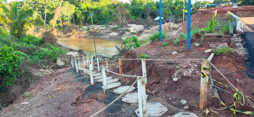 Os trabalhos de nivelamento do terreno já foram iniciados pela equipe que chegou ao município no domingo (29). A estrutura será utilizada até que o Governo do Estado realize a construção de uma ponte definitiva.