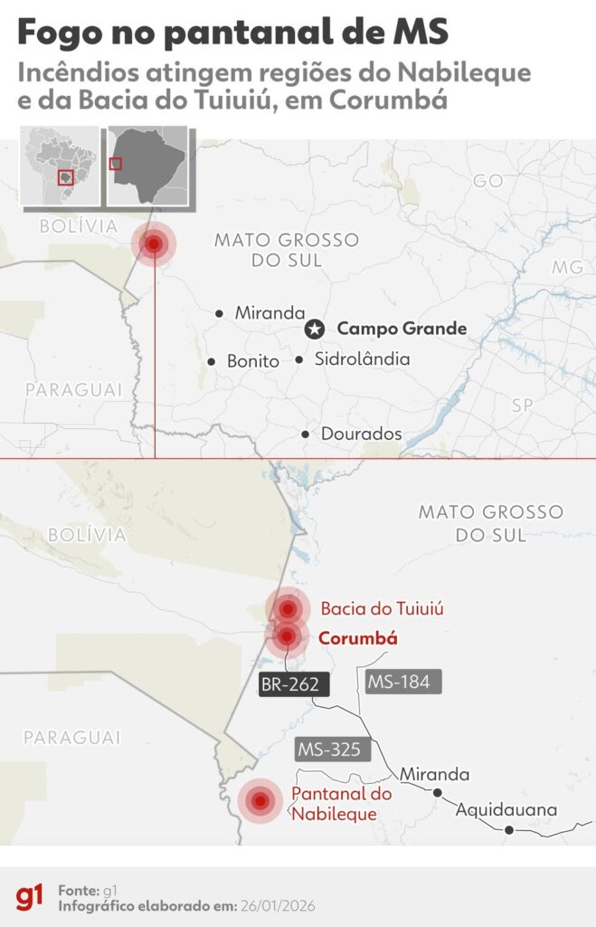 Paralelamente, desde sábado (24), as equipes também atuam no combate a outro incêndio na região da Baía do Tuiuiú, próxima ao Rio Paraguai. De acordo com a corporação, ainda existem focos ativos em áreas de difícil acesso, que permanecem sob monitoramento constante.