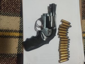 Em cumprimento ao mandado expedido pelo Poder Judiciário, a equipe policial realizou diligência no endereço situado no bairro Carandá Bosque, onde foi apreendido um revólver calibre .38, bem como 16 munições do mesmo calibre.