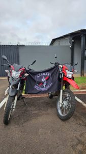 Durante as diligências também foram encontradas duas motocicletas sem placas, as quais, após verificação do número de chassi, constatou-se tratar de veículos com registro de furto, sendo uma Honda/XRE 190 e uma Honda/NXR 160 Bros, ambas objeto de ocorrências registradas na DEPAC Centro.