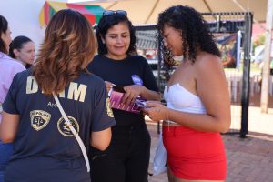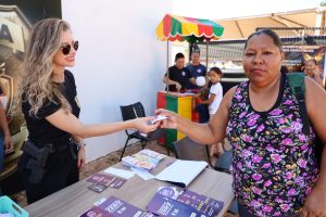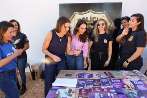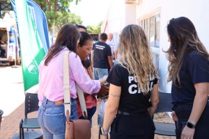 Durante a ação, a Polícia Civil disponibilizou um espaço voltado ao acolhimento qualificado de mulheres em situação de violência doméstica e familiar, com escuta ativa, orientações especializadas e encaminhamentos à rede de proteção. Também foram distribuídos materiais informativos sobre o enfrentamento à violência de gênero, além de ímãs personalizados com canais de denúncia e acesso facilitado aos serviços.