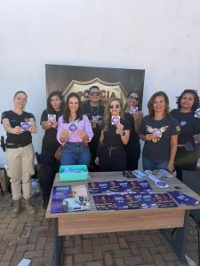 Além disso, foi divulgada a ferramenta de solicitação online de medidas protetivas de urgência, acessível por meio de QR Code, que possibilita à vítima requerer proteção de forma ágil, mesmo sem a necessidade imediata de comparecimento à unidade policial, através da distribuição de um ímã de geladeira contendo todas as informações necessárias e QR Code para acesso à plataforma.