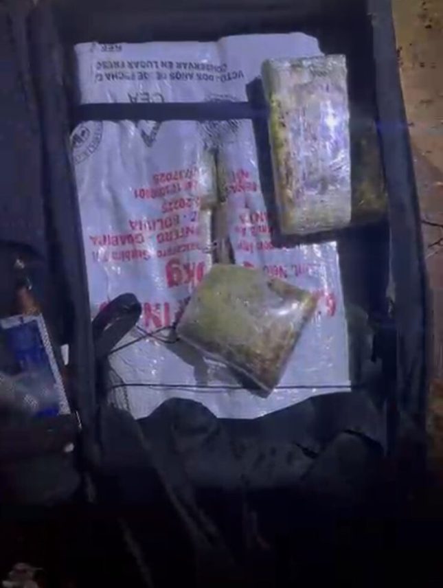 Com o apoio da guarnição de Trânsito, a equipe prosseguiu com buscas no compartimento inferior do ônibus, onde foi localizada uma mala com fundo falso contendo 11 tabletes de substância análoga à maconha, pesando aproximadamente 11,260 kg. O proprietário confessou ter recebido a mala em Porto Quijarro (BO) e que entregaria o entorpecente em São Paulo, mediante pagamento de R$ 2.100,00.