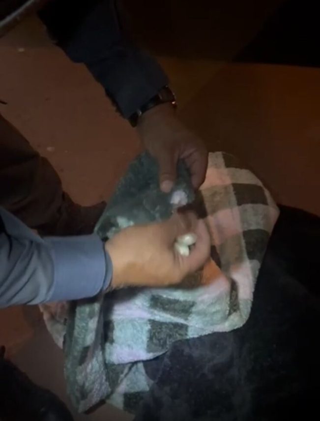 Na sequência, durante busca nas bagagens, foi encontrada uma mochila pertencente a um dos passageiros, contendo 30 cápsulas da mesma substância escondidas entre roupas e meias. O mesmo passageiro possuía ainda 26 cápsulas ocultas na região genital, totalizando 56 cápsulas (cerca de 807 gramas), e admitiu ter ingerido outras 28 cápsulas.