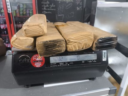 Durante a busca no veículo, os policiais localizaram cinco tabletes de substância análoga à maconha, escondidos na porta traseira esquerda, totalizando aproximadamente 4,230 kg. O autor afirmou acreditar que transportava cerca de 130 kg, informando que o carro estaria adaptado com compartimentos ocultos nas portas e no assoalho para o transporte de drogas.