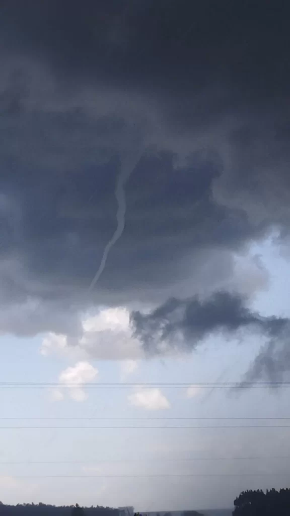 Além da chuva intensa, uma leitora encaminhou à redação a imagem de uma nuvem funil registrada na zona rural de São Gabriel do Oeste, nas proximidades do perímetro urbano. Segundo o relato, o fenômeno foi observado por volta das 11h.