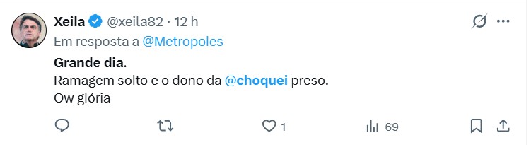 A prisão do influenciador Raphael Sousa Oliveira, dono da página Choquei, gerou forte repercussão nas redes sociais nesta quarta-feira (15), com a viralização de publicações que retomaram o bordão “grande dia”, popularizado pelo ex-presidente Jair Bolsonaro (PL).